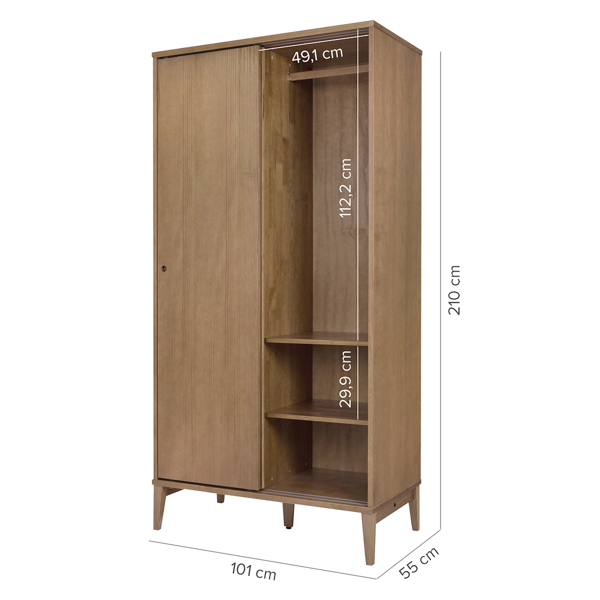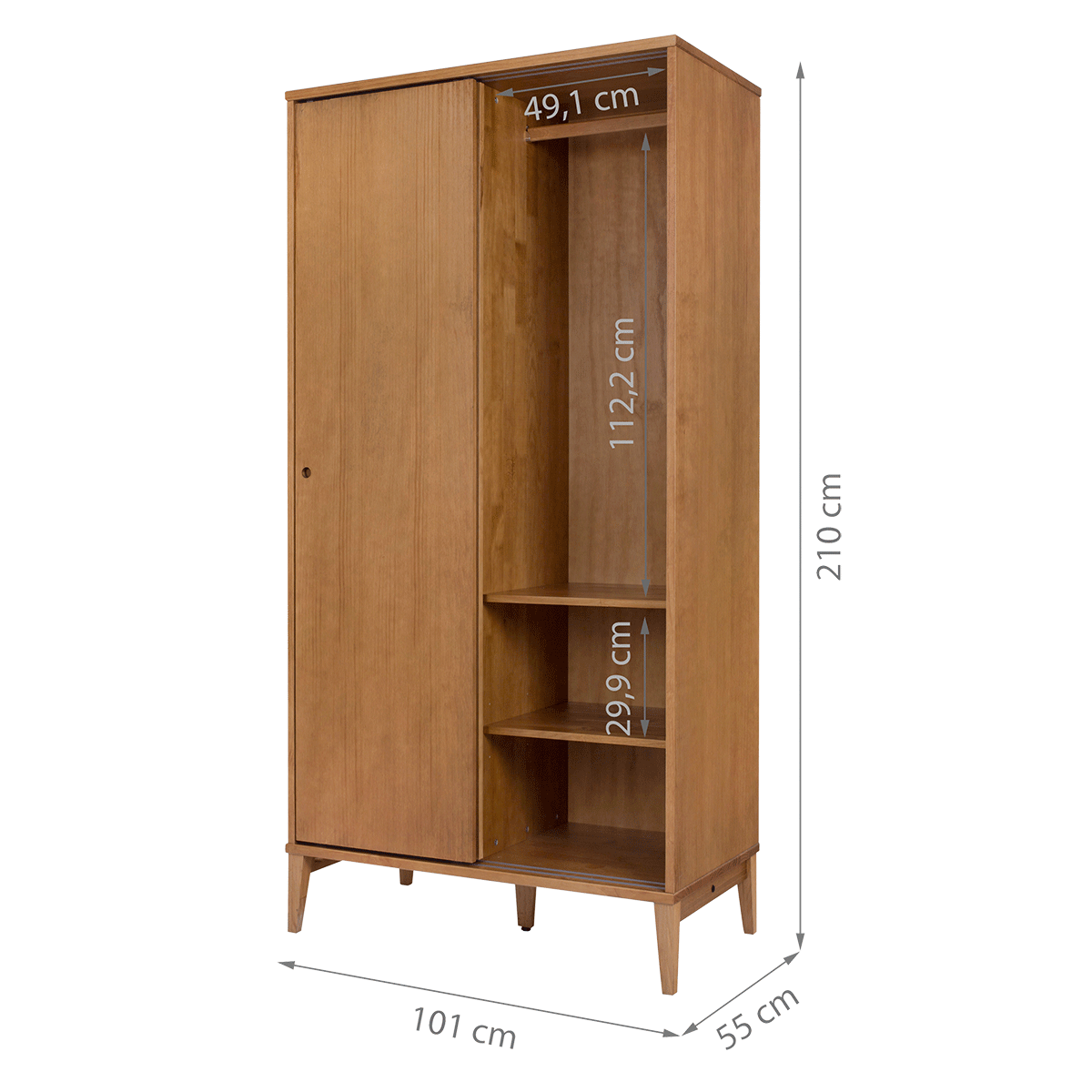Le charme de la garde-robe autour du style rétro est très chic! C'est beau, de bon goût, spacieux et fonctionnel. Avec ce meuble, vous pouvez créer plus d'espace de stockage dans votre chambre à coucher. Vous pouvez décider de la manière dont vous souhaitez utiliser la belle porte coulissante. Ouvert ou fermé - votre armoire de charme sera toujours belle. Sa polyvalence le rend approprié pour les enfants ou les chambres.