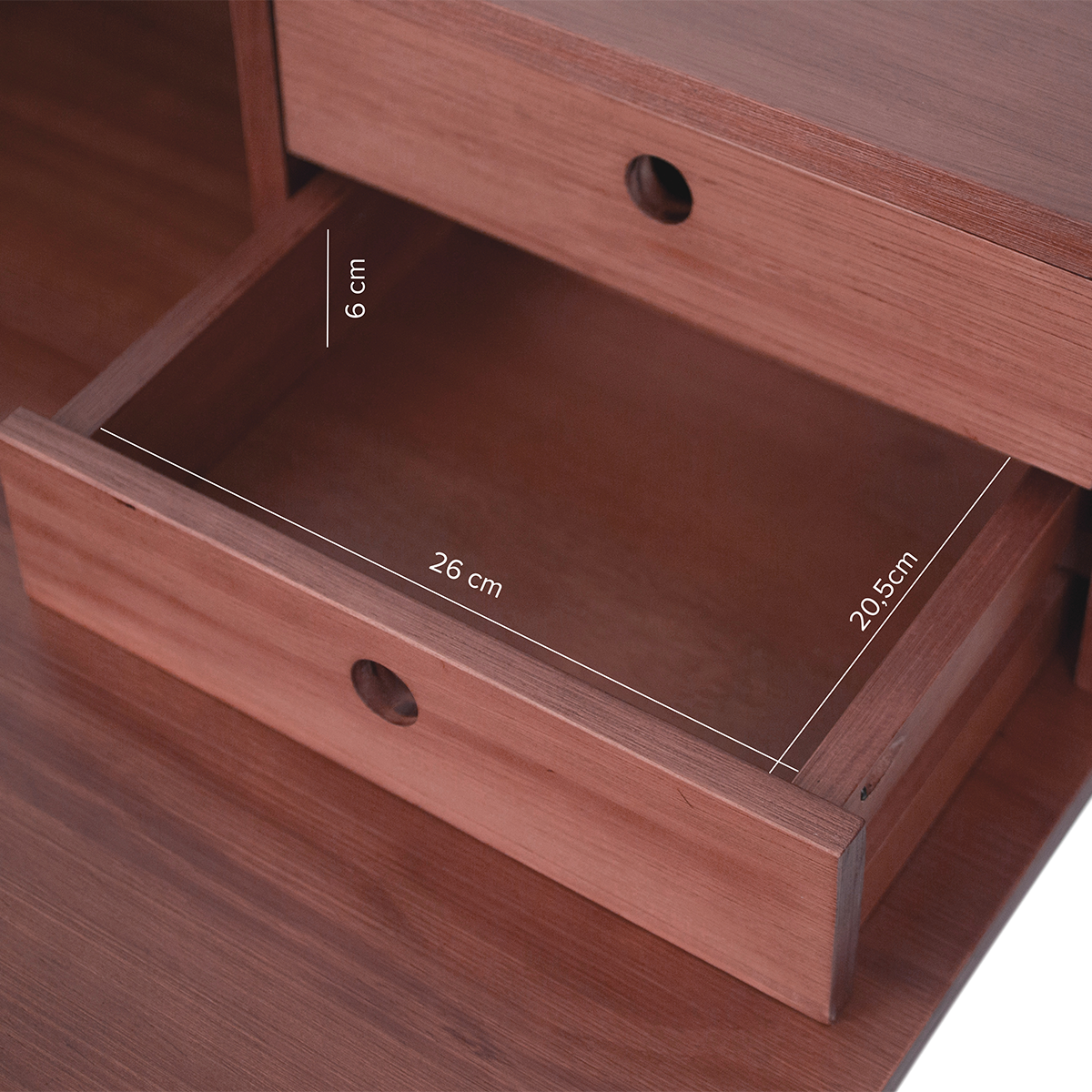 • Les mesures du tiroir sont: 6 cm de hauteur x 20,5 cm de profondeur x 26 cm de largeur;