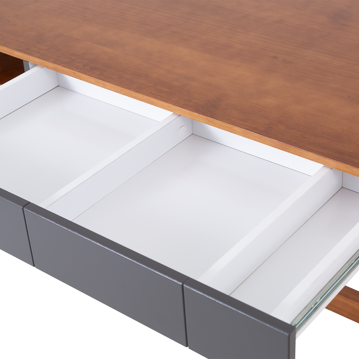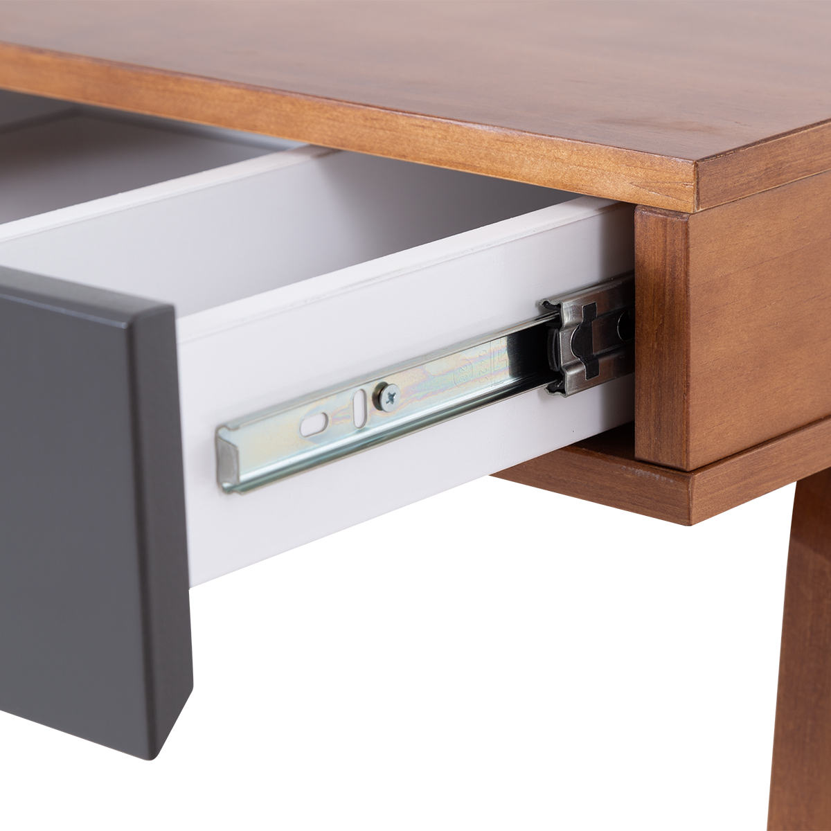 Bureau en bois pour ordinateur. Moderne et propre, il s'intègre bien dans le bureau, le bureau à domicile, la chambre à coucher comme coiffeuse ou même comme buffet dans le salon. Desk Mandal vous offre un plan de travail généreux, un espace de rangement suffisant ainsi qu'un tiroir généreux et toujours un espace ouvert pour la papeterie.