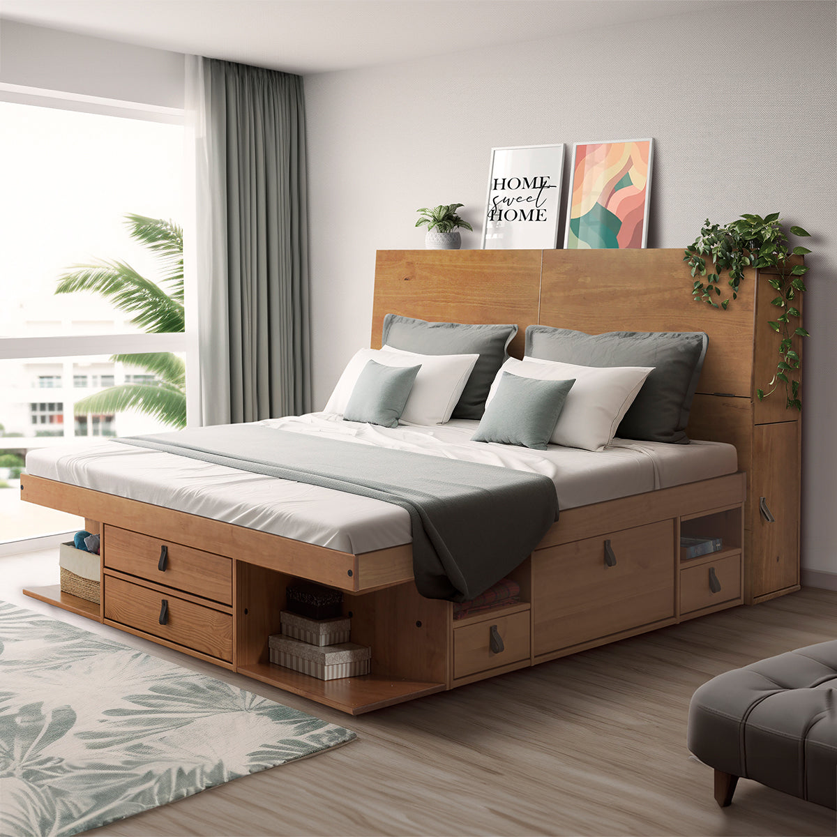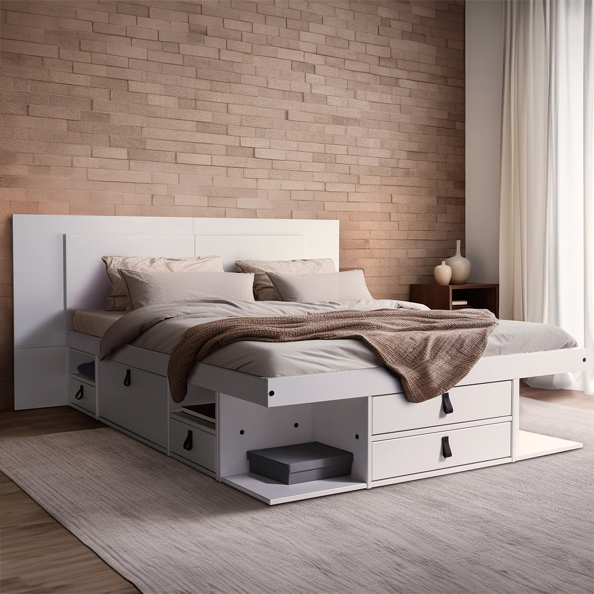Le lit "Bali" vous offre non seulement du confort, mais aussi de nombreux espaces de rangement pour conserver vos effets personnels, vos objets de décoration, vos vêtements et votre literie ; vous aurez donc beaucoup de place dans votre chambre.