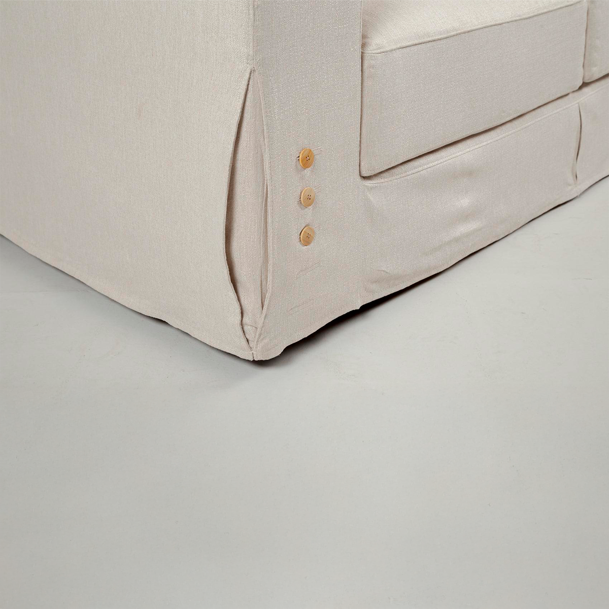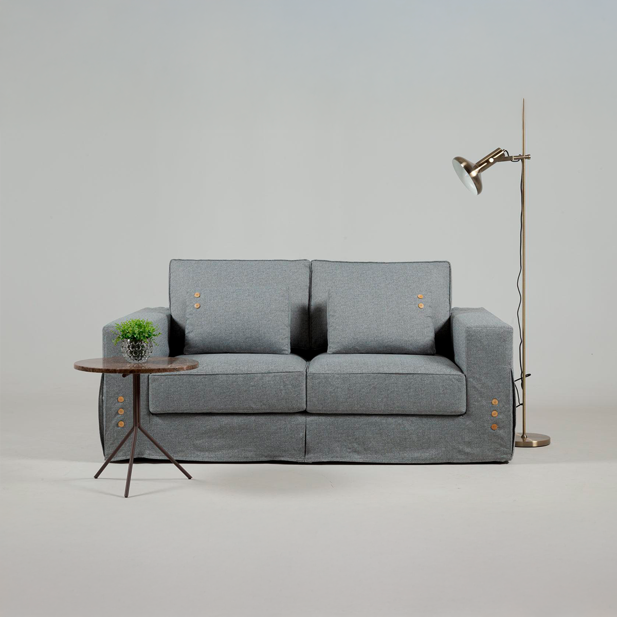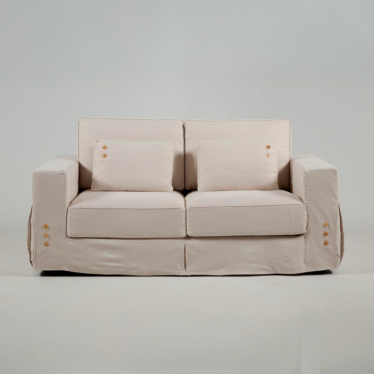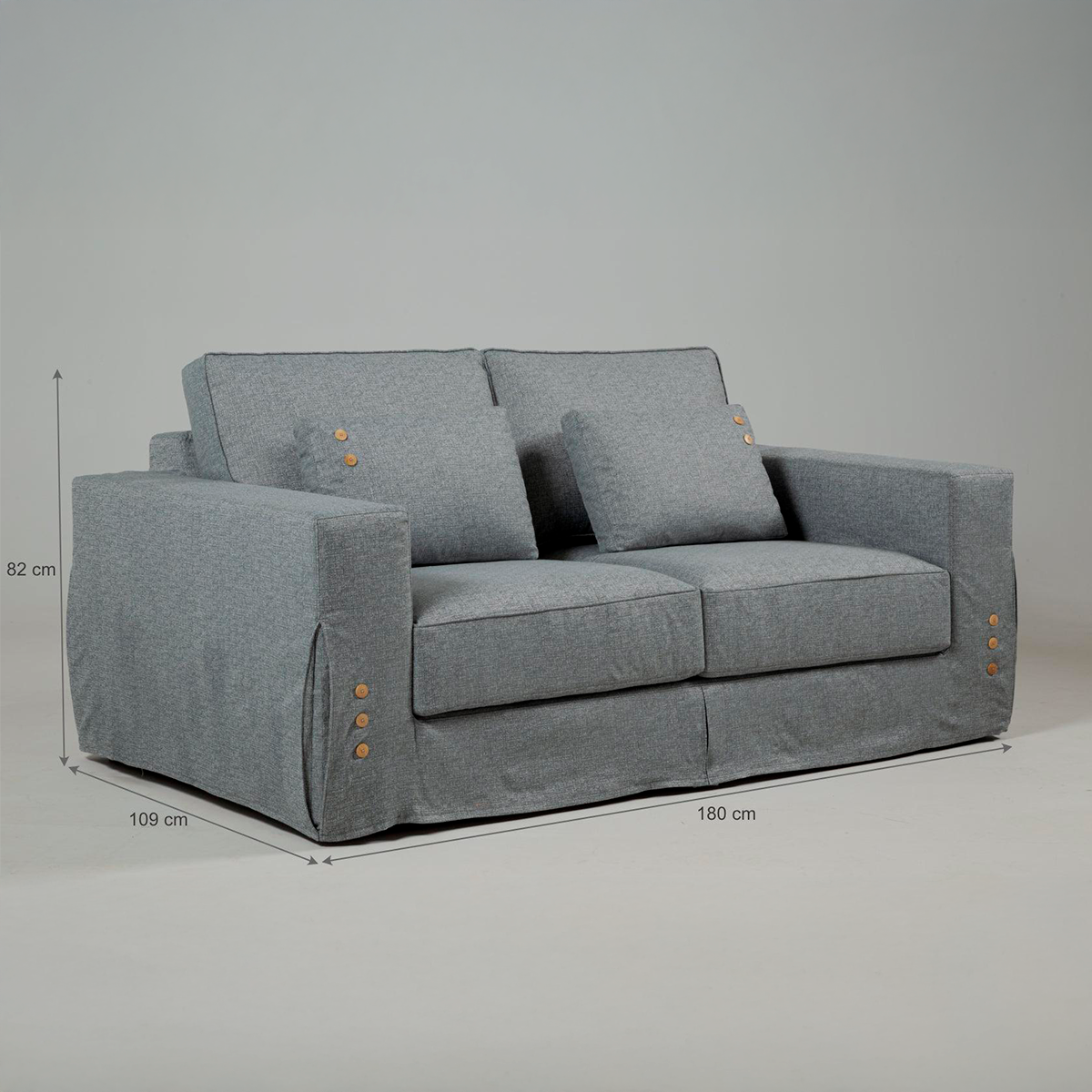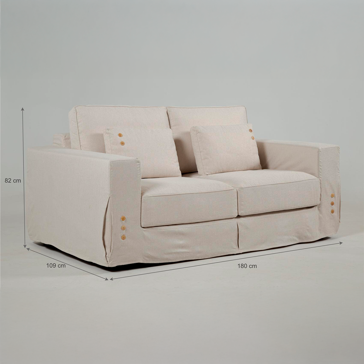 La matière première utilisée est de première qualité. Les coussins du dossier sont remplis de fibres siliconées et recouverts d'une couverture en fibres. Le siège est muni de sangles élastiques. Le canapé est proposé en 2 options de tissu : A1113 et A1114. Dans des tons neutres et parfaits pour tout type de décoration !
